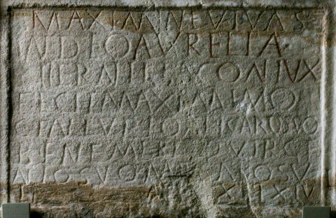 Maximine vivas / in deo Aurelia / Hernilla coniux / fecit Maximi<n=M>o / centurioni caro suo / bene merito Virgi/nio suo MAF[---] posu/et(!) [---] an(n)[o]s XI TXLVL - Funktion