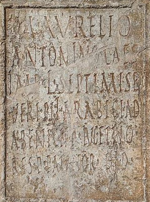 - M(arco) Aurelio / Antonino Caes(ari) / Imp(eratoris) L(uci) Septimi Se/veri Pii Arabici Adi/abenici p(atris) p(atriae) Aug(usti) filio / res p(ublica) Panhor(mitanorum) d(ecreto) d(ecurionum)