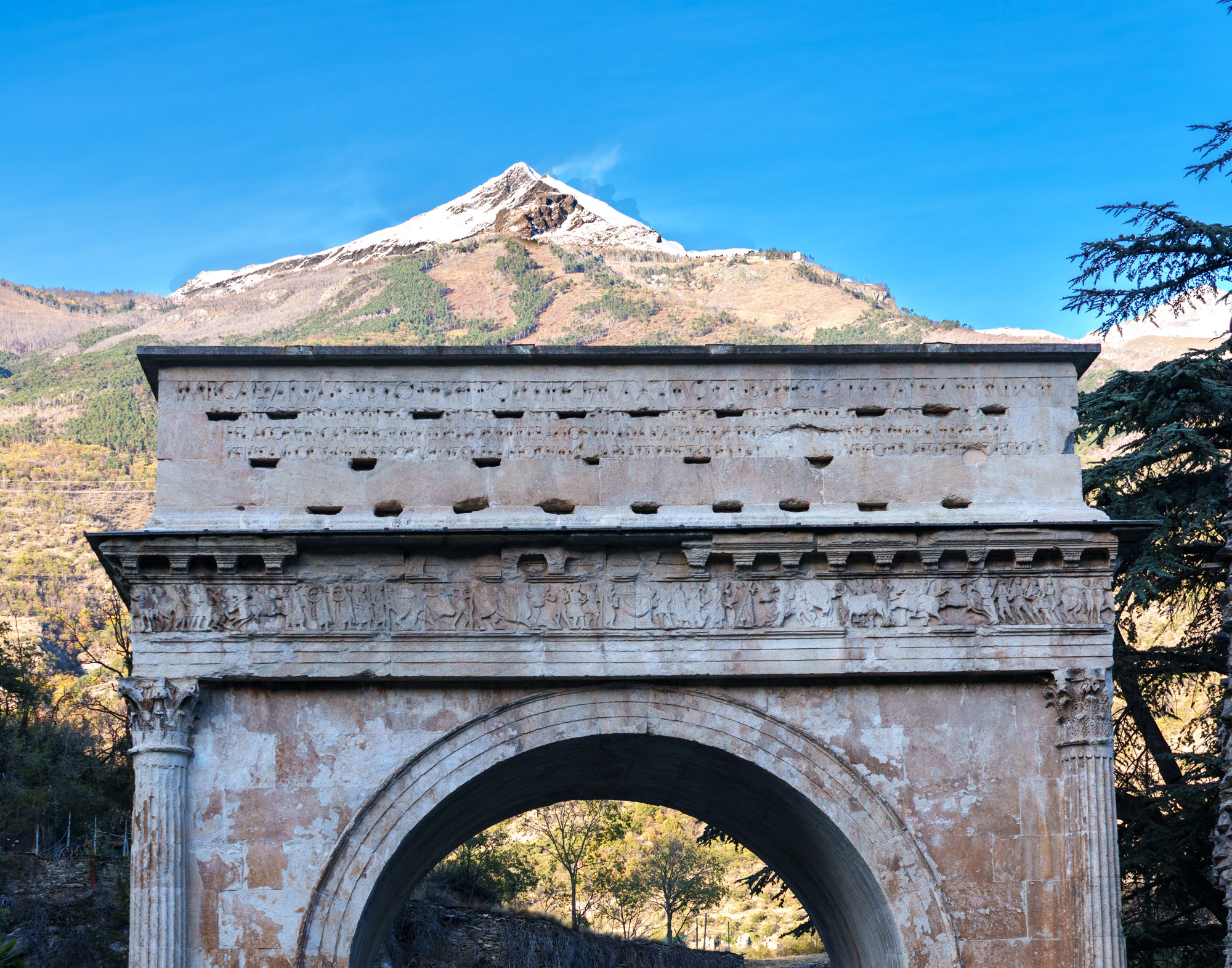 33277 Inschrift auf der Südseite der Attika des Augustusbogens