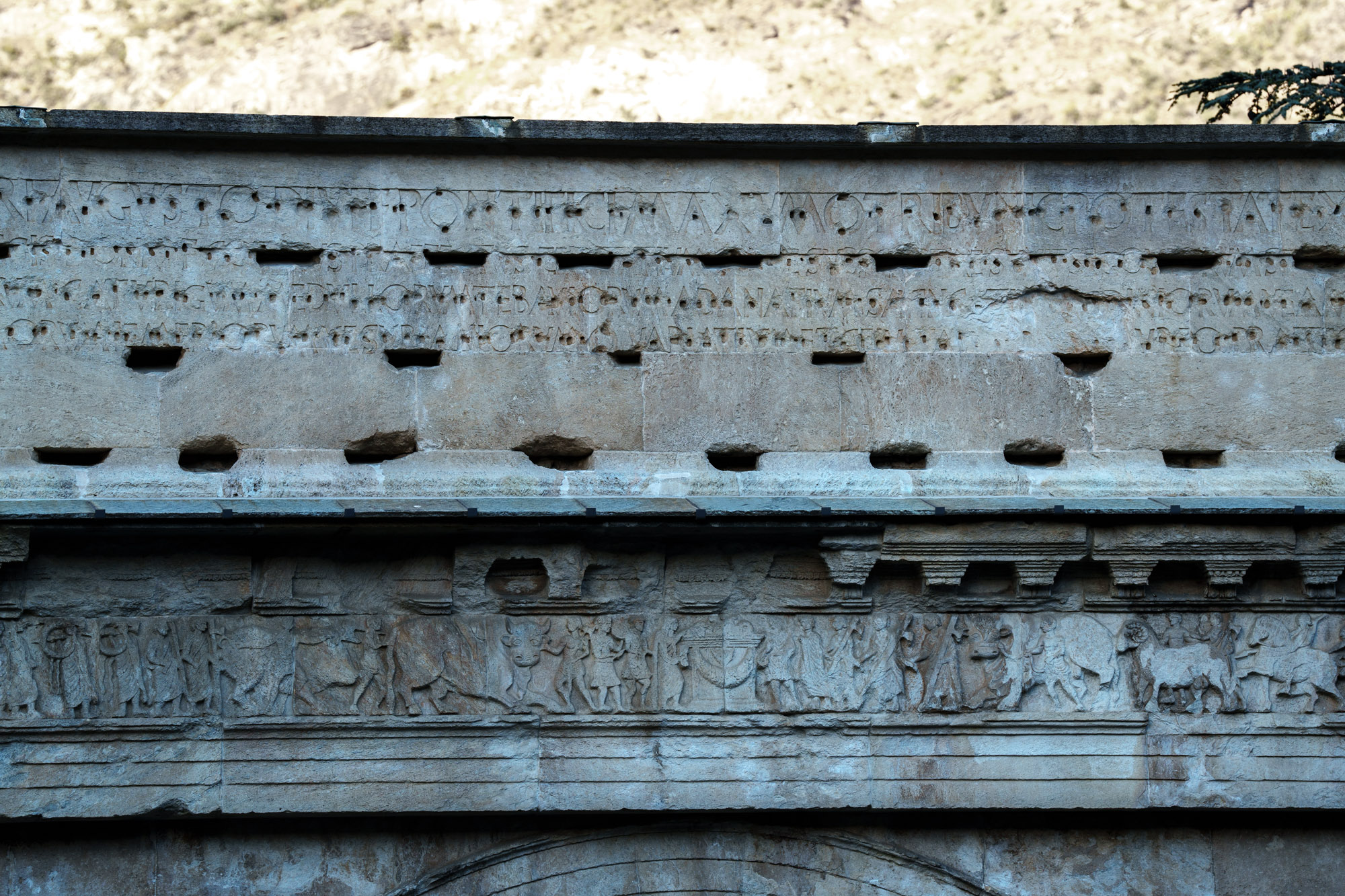 33277 Inschrift auf der Südseite der Attika des Augustusbogens