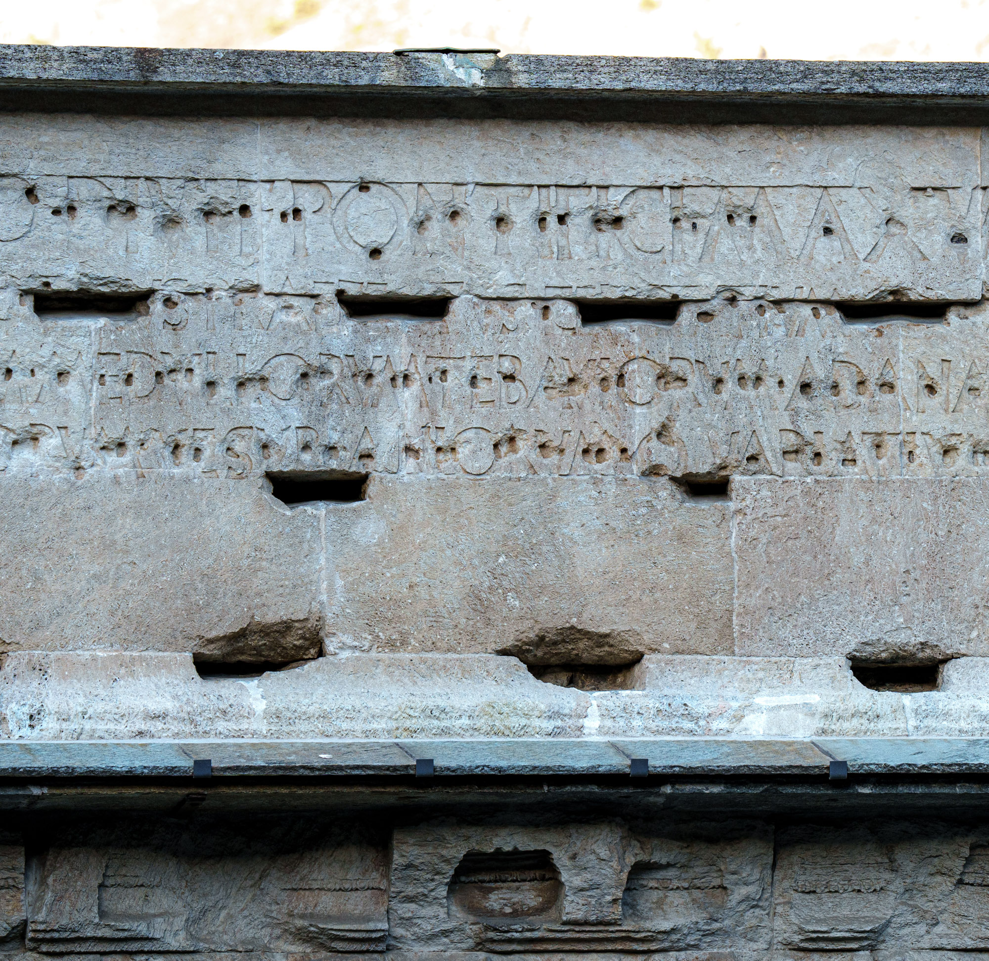 33277 Inschrift auf der Südseite der Attika des Augustusbogens