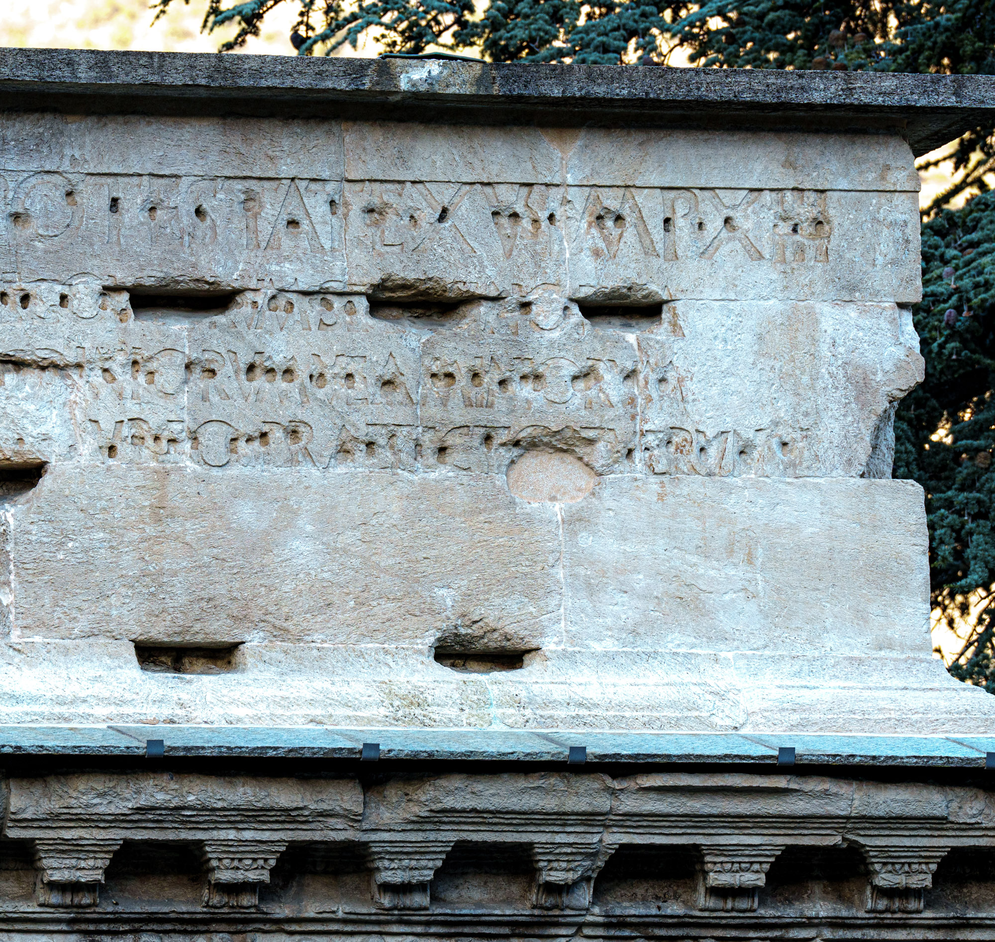 33277 Inschrift auf der Südseite der Attika des Augustusbogens
