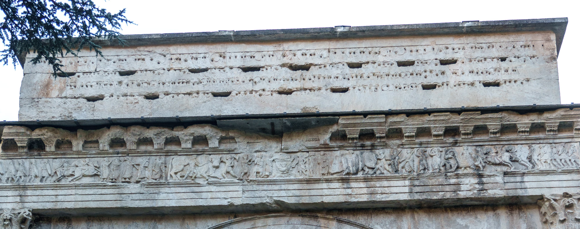 33278 Inschrift auf der Νοrdseite der Attika des Augustusbogens