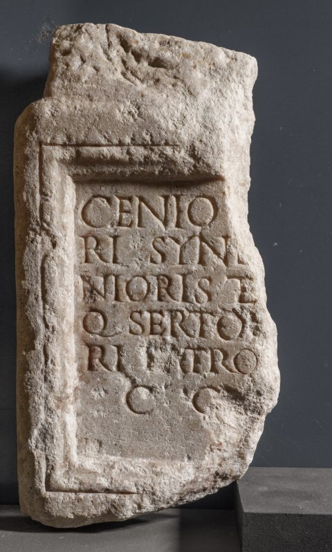- Genio [Q(uinti) Serto]/ri Syne[rgi iu]/nioris et [Genio] / Q(uinti) Sertor[i Seve]/ri patro[norum] / c(ollegium) c(entonariorum) [Ind(ustriensium)]