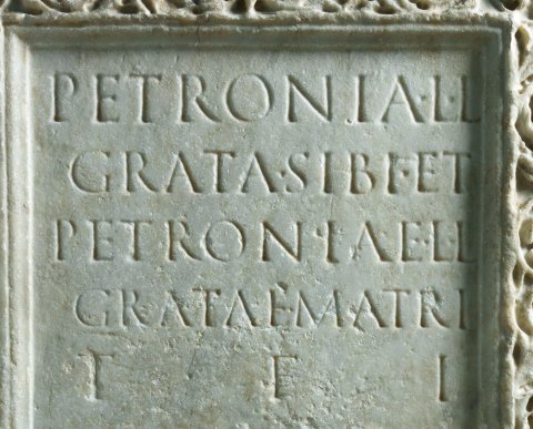 - Petronia L(uci) l(iberta) / Grata sibi et / Petroniae L(uci) l(ibertae) / Gratae matri / t(estamento) f(ieri) i(ussit)