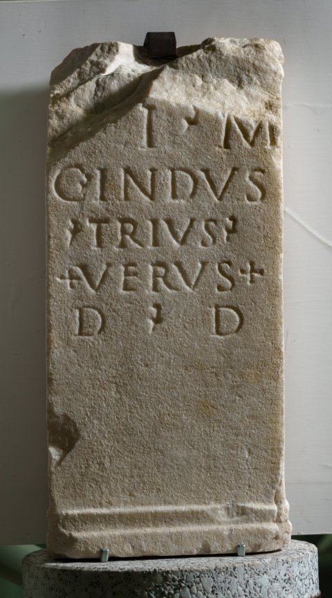 - [D(eo)] I(nvicto) M(ithrae) / C(aius) Indus/trius / Verus / d(onum) d(edit)