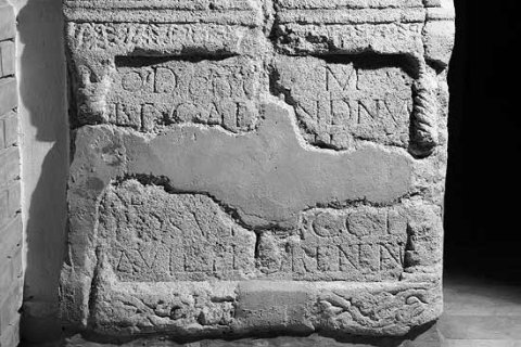 - Q(uintus) [---] C(ai) fil(ius) [ --- // D(is) M(anibus) / L(ucius) F(---) Cal[e]ndinus / [---]us / [------] / se[---] / posui[t et?] Oct/avi(a)e Florentin(a)e