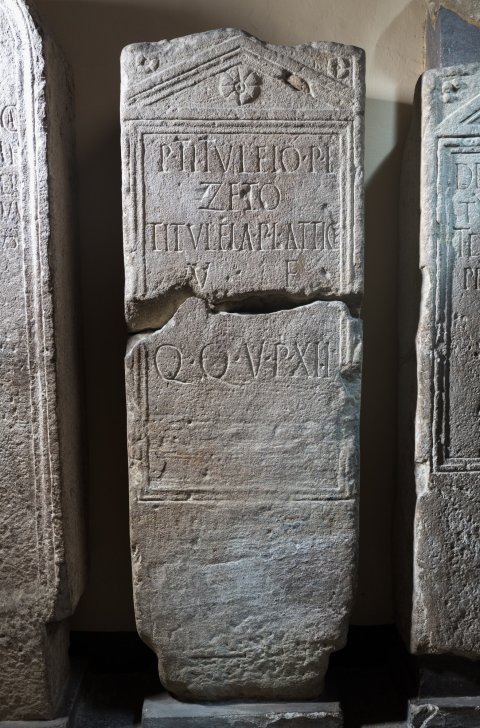 - P(ublio) Tituleio P(ubli) l(iberto) / Zeto / Tituleia P(ubli) l(iberta) Attice / v(iva) f(ecit) / q(uo)q(uo)v(ersus) p(edes) XII