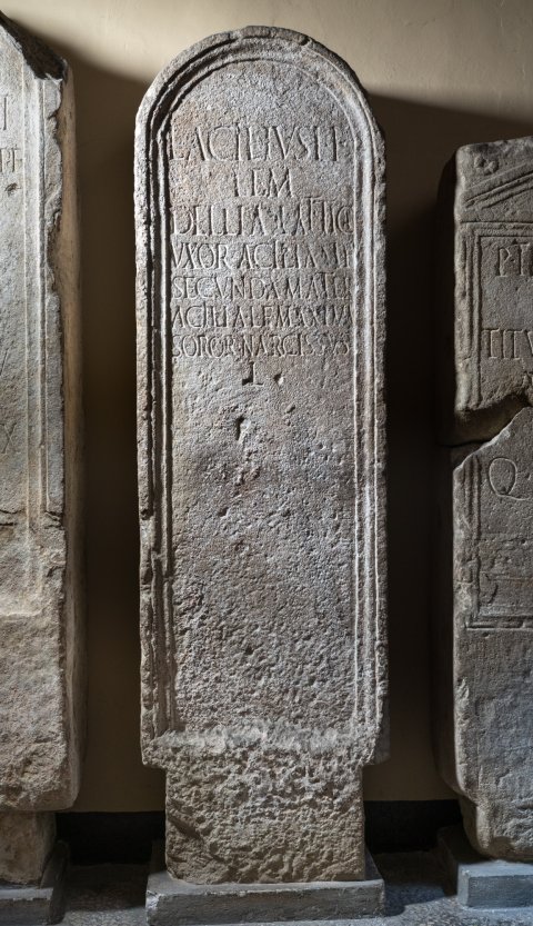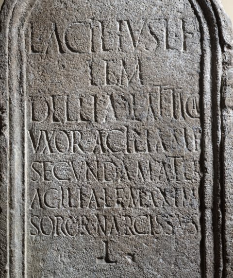 - L(ucius) Acilius L(uci) f(ilius) / Lem(onia) / Dellia S(puri) l(iberta) Attica / uxor Acilia M(arci) f(ilia) / Secunda mater / Acilia L(uci) f(ilia) Maxima / soror Narcissus