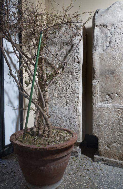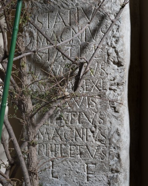 - Statius / Magnius / Stati l(ibertus) / Auctus / Sosia Sex(ti) l(iberta) / Suavis / Statius / Magnius / Philetus / l(ibertus) f(ecit)