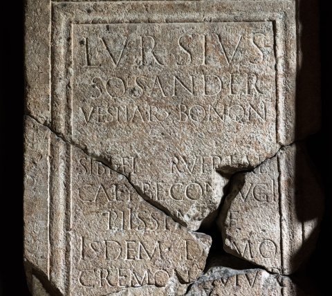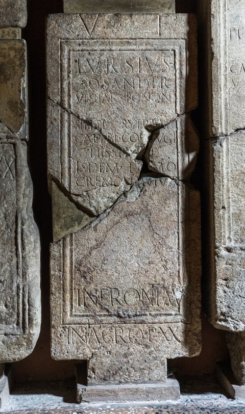 - Borgo Panigale, in einem Damm des 5./6. Jhs. verbaut, 1894 beim Hochwasser des Flusses Reno zutage gekommen