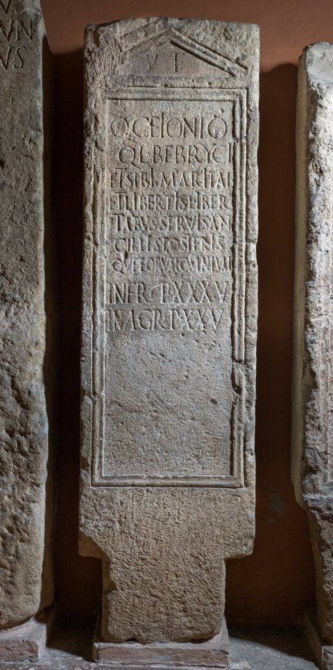 - Borgo Panigale, in einem Damm des 5./6. Jhs. verbaut, 1894 beim Hochwasser des Flusses Reno zutage gekommen