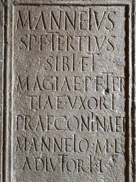 - M(arcus) Anneius / Sp(uri) f(ilius) Tertius / sibi et / Magiae P(ubli) f(iliae) Ter/tiae uxori / Praeconinae f(iliae) / M(arco) Anneio M(arci) l(iberto) / Adiutori l(iberto)