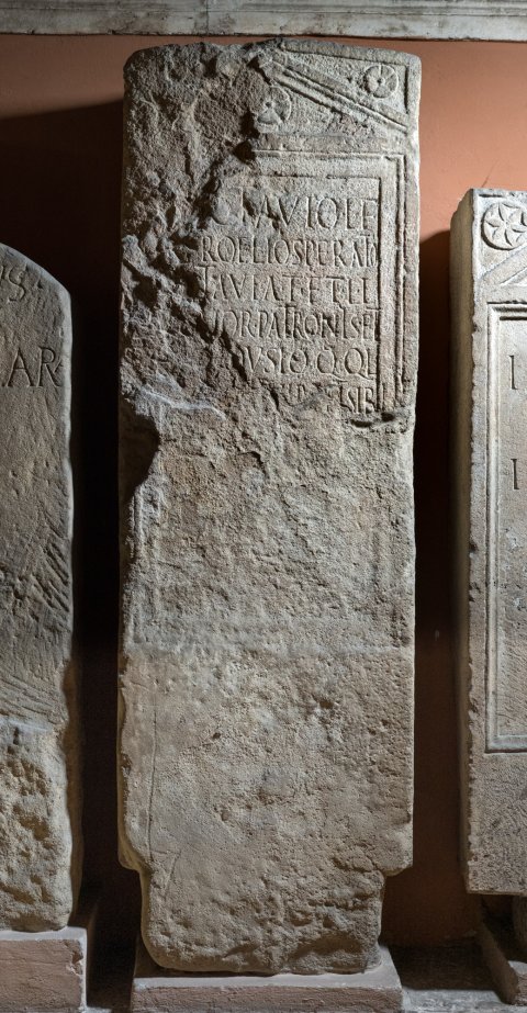 - Borgo Panigale, in einem Damm des 5./6. Jhs. verbaut, 1894 beim Hochwasser des Flusses Reno zutage gekommen