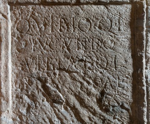 - Q(uinto) Vibio Q(uinti) l(iberto) / Iucundo / Vibiae Q(uinti) l(ibertae) / Ser[van]dae / Q(uintus) V[i]b[i]us / D[---