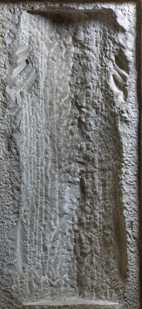 33433 Zum Sarkophagdeckel umgearbeitete Grabstele