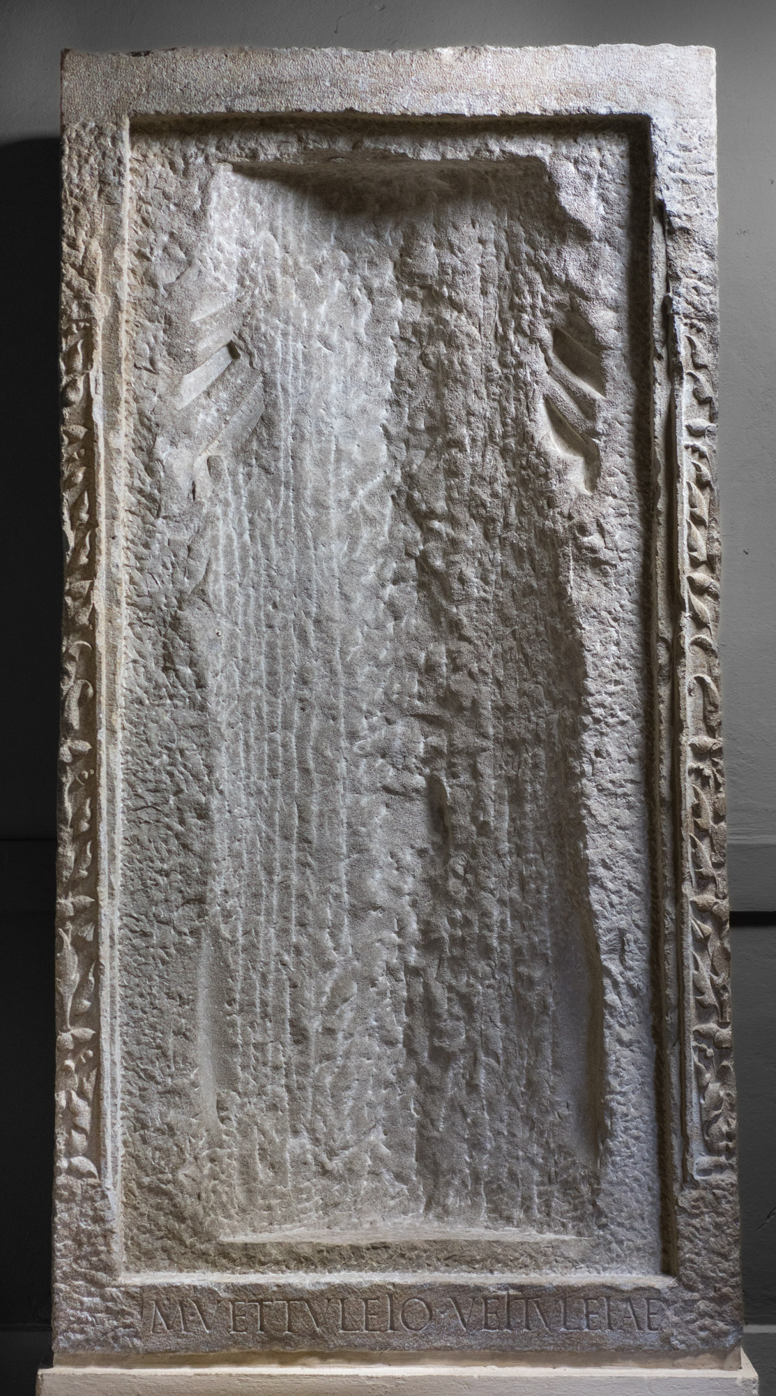 33433 Zum Sarkophagdeckel umgearbeitete Grabstele
