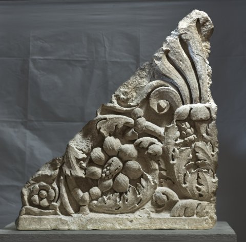 - Eckakroter (?) mit Palmette über Akanthuskelch, seitlich davon Spiralranke