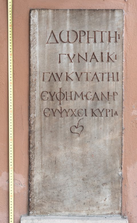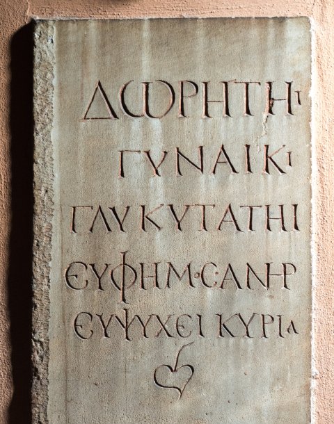griechisch: Δωρήτηι / γυναικὶ̣ / γλυκυτάτηι /