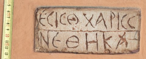 - griechisch : [---]εσις θ(εῷ)(?) χαρισσ/[τήριον(?) ἀ]νέθηκα. ☩
