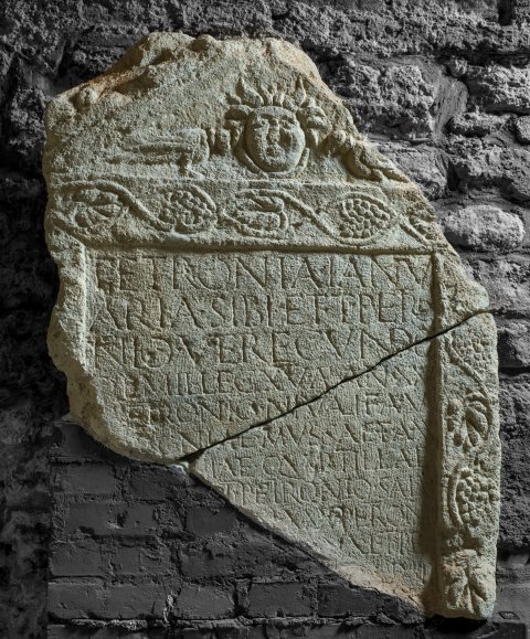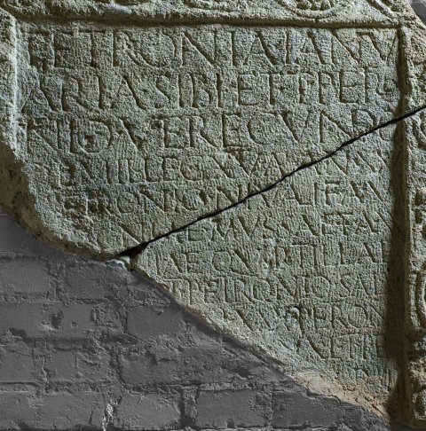 - Petronia Ianu/aria sibi et T(ito) Petro/nio Verecundo / fil(io) mil(iti) leg(ionis) XV Ap(ollinaris) an(norum) XX / [T(ito)] Petronio Nivali f(ilio) a(nnorum) V / [Petr]oniae Mussae f(iliae) a(nnorum) XX / [Petro]niae Quartillae / [f(iliae) a(nnorum) ---] T(ito) Petronio Salu/[tari? fil(io) a]n(norum) XXX Petroni/[ae --- a]n(norum) XL T(ito) Pe/[tronio --- a]n(norum) VII / [---