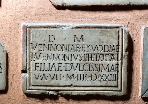- D(is) M(anibus) / Vennoniae Eyvodiae(!) / L(ucius) Vennonius Philocal(us) / filiae dulcissimae / v(ixit) a(nnos) VII m(enses) IIII d(ies) XXIII