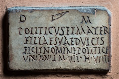 - D(is) M(anibus) / Politicus et mater / filiae suae dulcis(simae) / fecit nomine Politice / vix(it) an(num) I m(enses) VII h(oras) VIIII