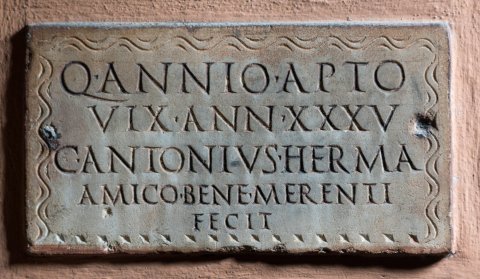 - Q(uinto) Annio Apto / vix(it) ann(os) XXXV / C(aius) Antonius Herma / amico bene merenti / fecit