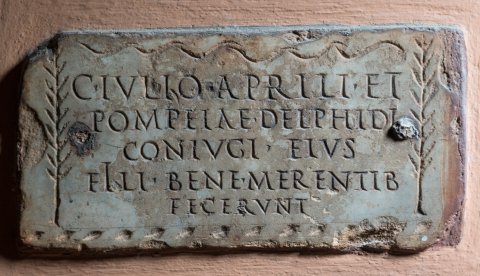 - C(aio) Iulio Aprili et / Pompeiae Delphidi / coniugi eius / fili(i) bene merentib(us) / fecerunt