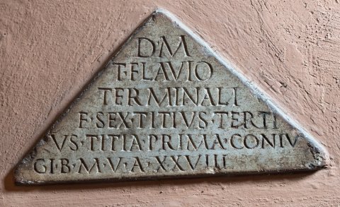- D(is) M(anibus) / T(ito) Flavio / Terminali / f(ecit) Sex(tus) Titius Terti/us Titia Prima coniu/gi b(ene) m(erenti) v(ixit) a(nnos) XXVIII