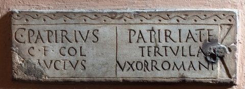 - C(aius) Papirius / C(ai) f(ilius) Col(lina) / Auctus // Papiria T(iti) f(ilia) / Tertulla / uxor Romani