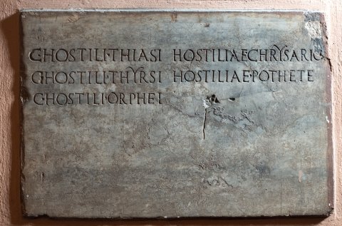 - C(ai) Hostili Thiasi / C(ai) Hostili Thyrsi / C(ai) Hostili Orphei // Hostiliae Chrysario / Hostiliae Pothete