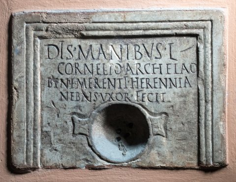 - Dis Manibus L(ucio) / Cornelio Archelao / bene merenti Herennia / Nebris uxor fecit