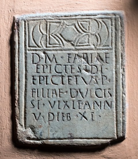 - D(is) M(anibus) Fabiae / Epictesidi / Epictetus p(ater) / filiae dulcis/si(mae) vixit ann(is) / V dieb(us) XI
