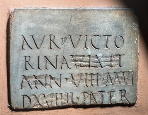 - Aur(elia) Victo/rina vixit / ann(os) VIII m(enses) VI / d(ies) XVIIII pater