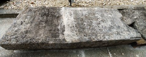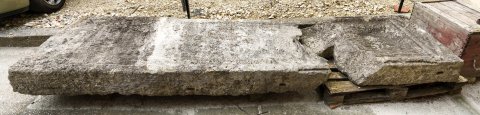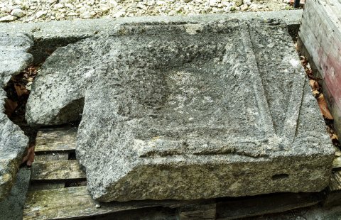 - stark verwittert, in 2 Teile zerbr., Reliefs abgemeißelt