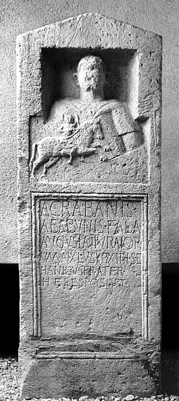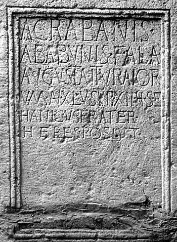 - Acrabanis / Ababunis f(ilius) ala / Augusta Ituraior/um an(norum) XLV stip(endiorum) XII h(ic) s(itus) e(st) / Hanicus frater / heres posiut (!)