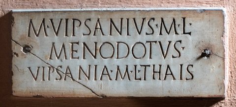 - M(arcus) Vipsanius M(arci) l(ibertus) / Menodotus / Vipsania M(arci) l(iberta) Thais