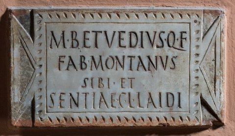 - M(arcus) Betuedius Q(uinti) f(ilius) / Fab(ia) Montanus / sibi et / Sentiae C(ai) l(ibertae) Laidi