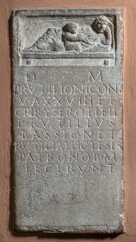 - D(is) M(anibus) / P(ublio) Rutilio Niconi / v(ixit) a(nnos) XXVIII et / Chryseroti fil(io) / P(ublius) Rutilius / Bassion et / Rutilia Epictesis / patrono b(ene) m(erenti) / fecerunt