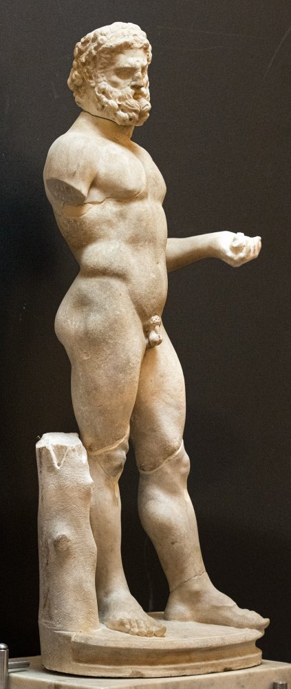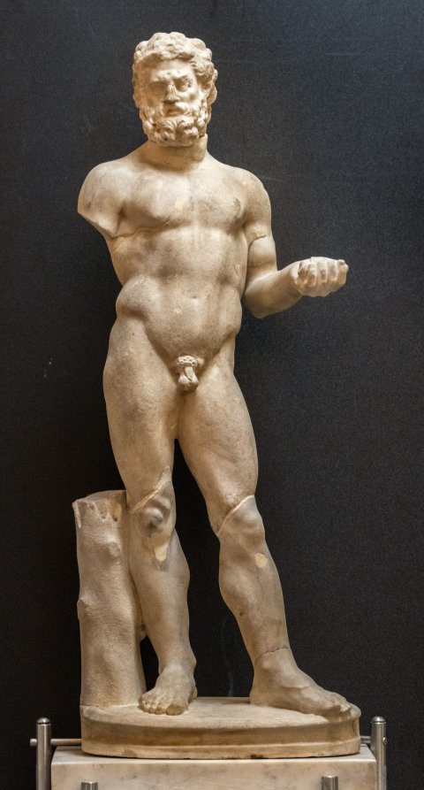 - Beine tlw. ergänzt, rechter Arm abgebr., Kopf antik, aber nicht zugehörig