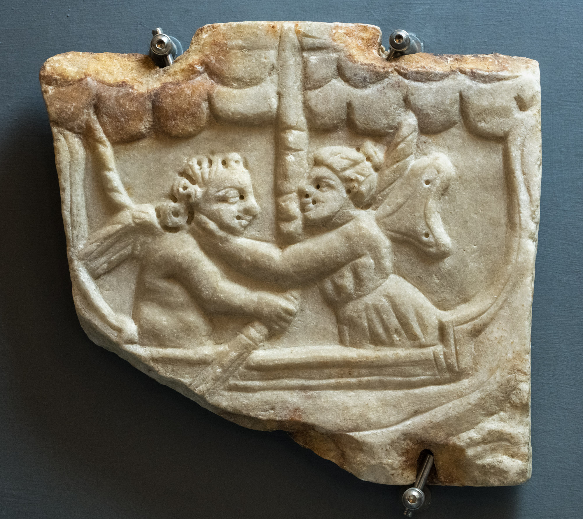 33792 Fragment eines Sarkophagdeckels mit Eros und Psyche