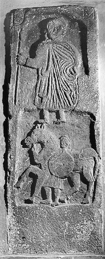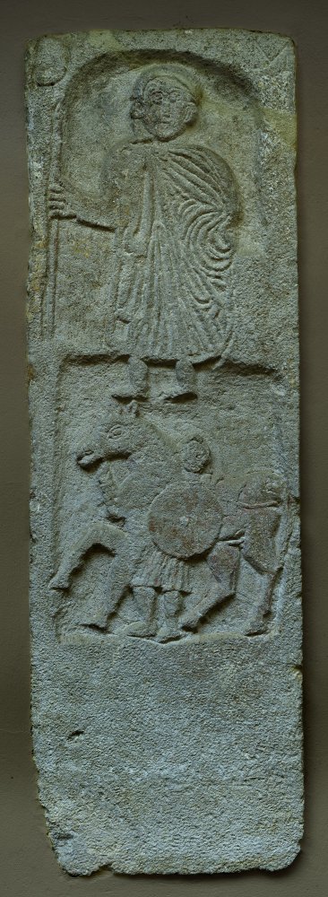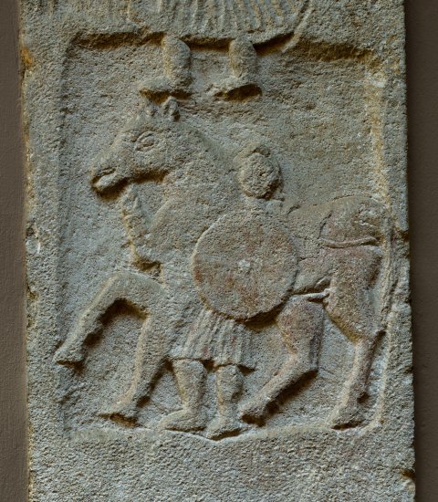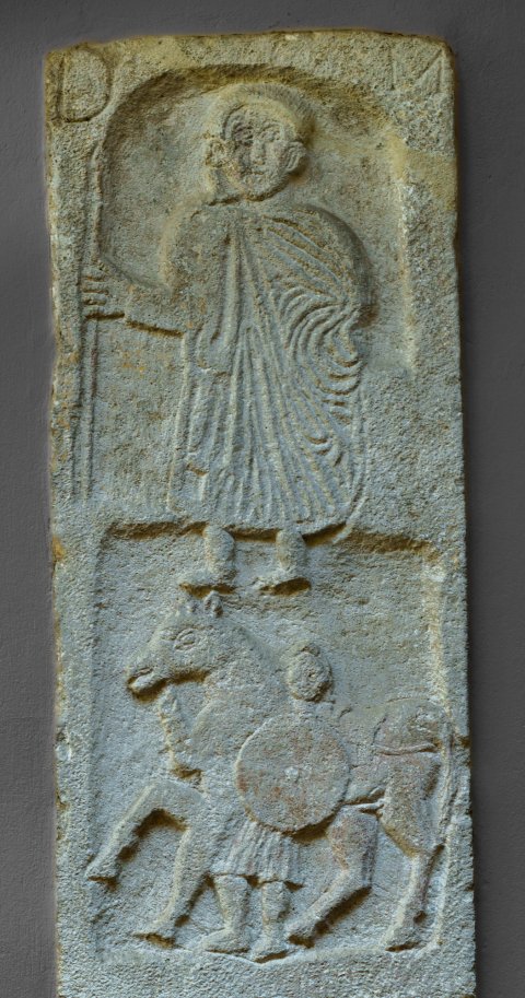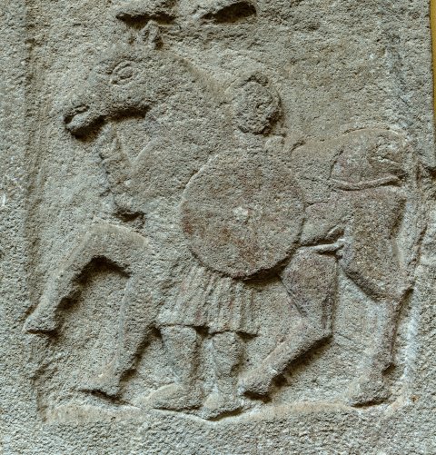 Im unteren Relieffeld Calo mit Pferd u. Rundschild. - Inschrift