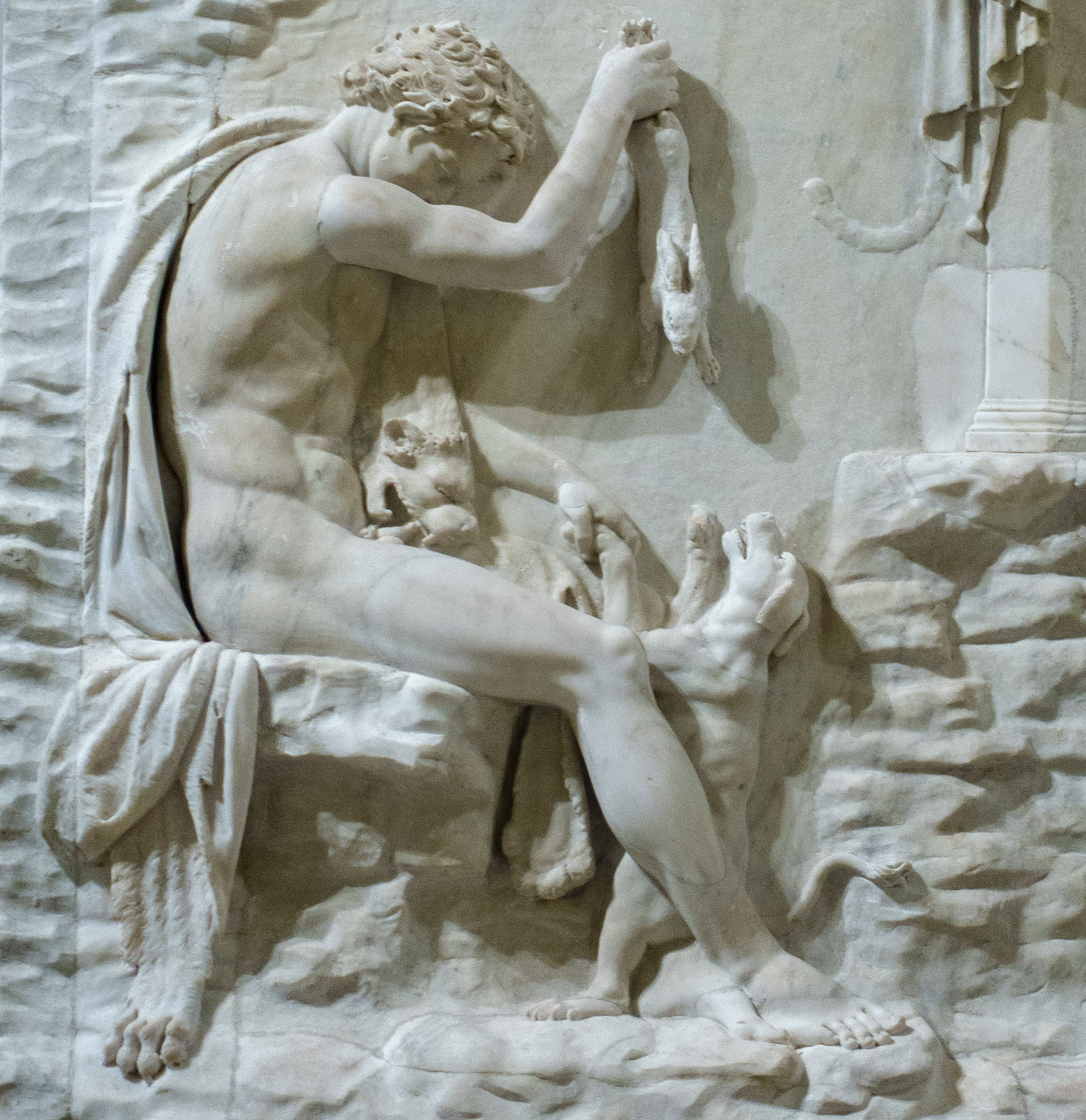 33801 Relief mit sitzendem Satyr mit Hund