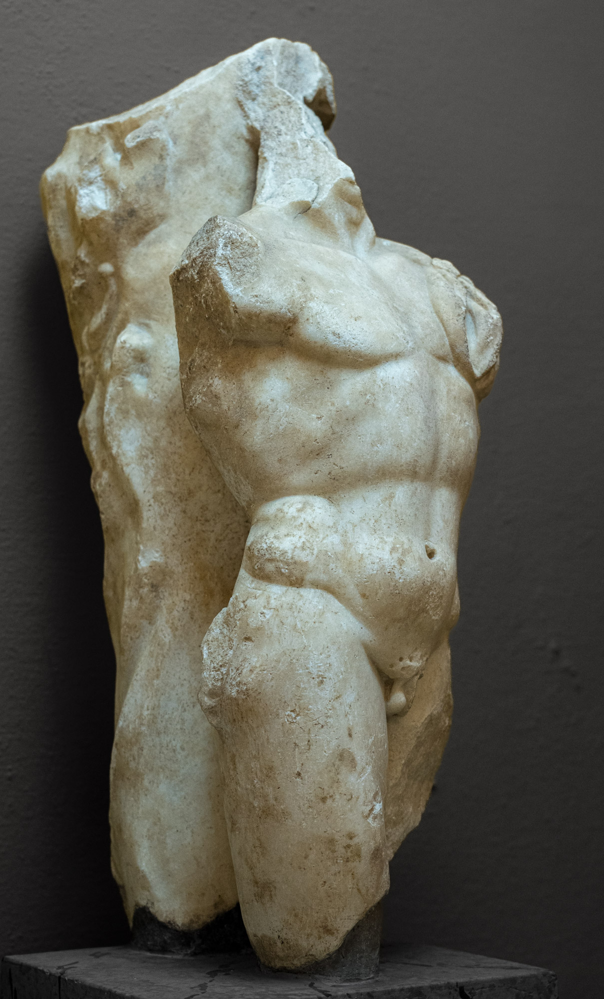 33817 Männlicher Torso vor Baumstamm