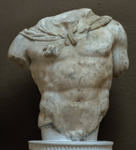 - Torso ohne Kopf u. Beine, mit Resten der Oberarme.