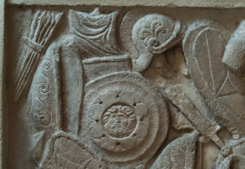 33830 Fragment eines Waffenfrieses