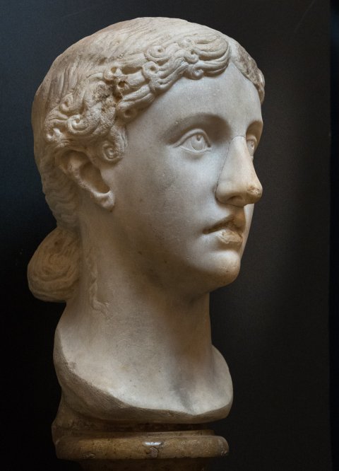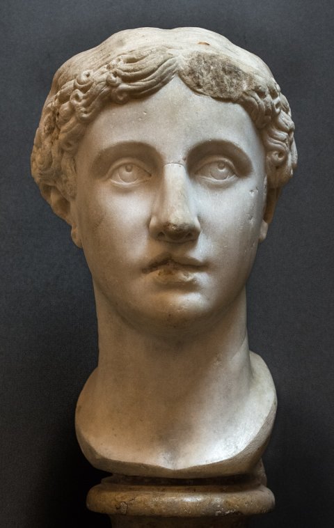 - Kopf zum Einsetzen. Frau mit Frisur des 1. Jhs., im späteren 4. Jh. überarbeitet