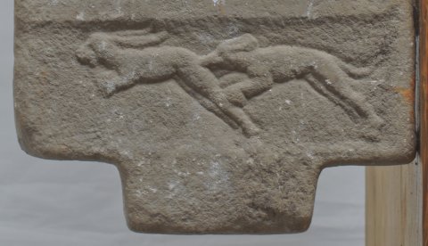 Im Sockelbild Tiere: Hund jagt Hasen.
