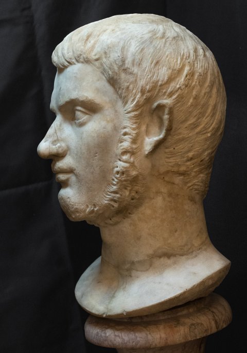 - Nase ergänzt, Bruch durch den Halsansatz, darunter ergänzt